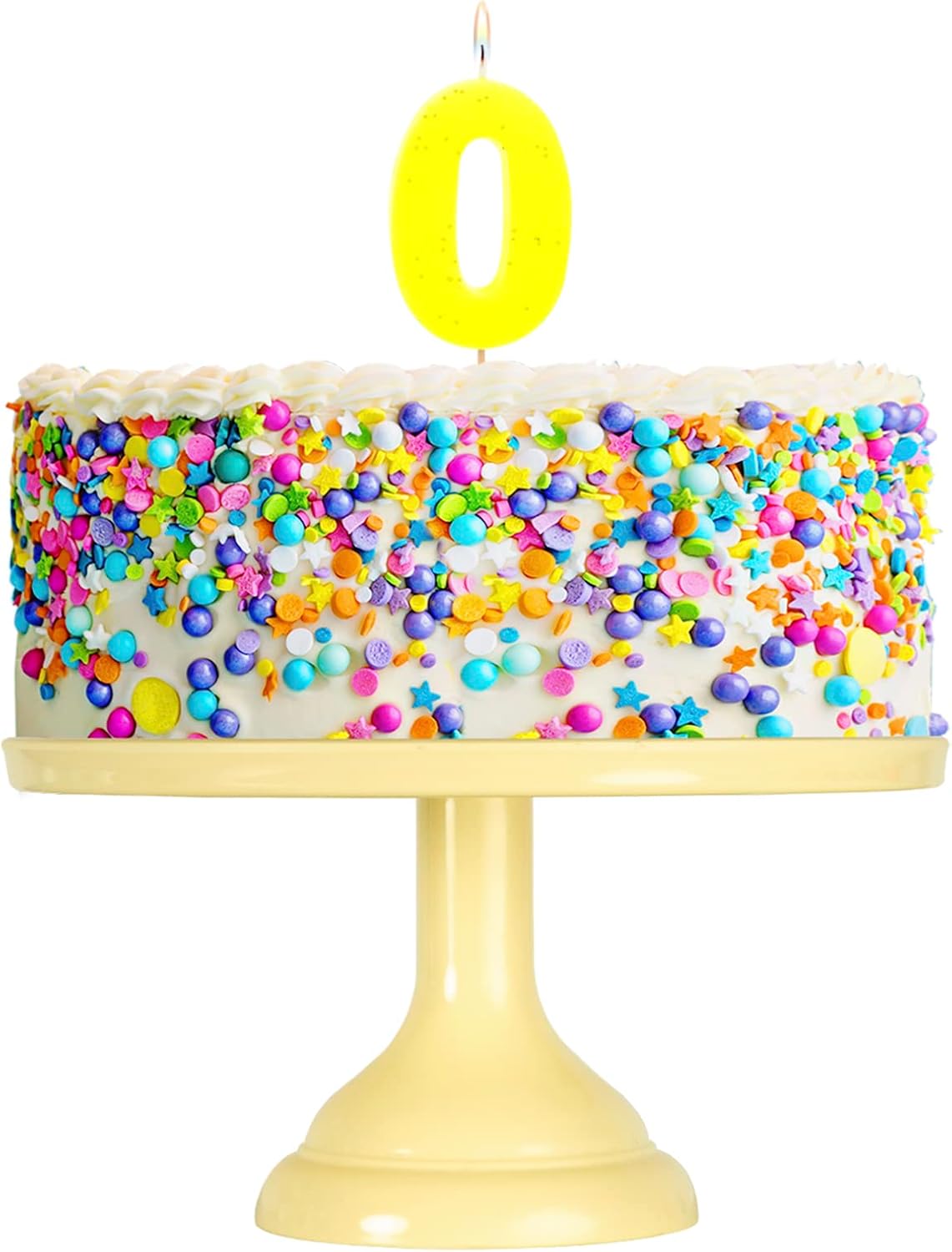 Lumanare cifra 0 galben fluo, 7.5cm